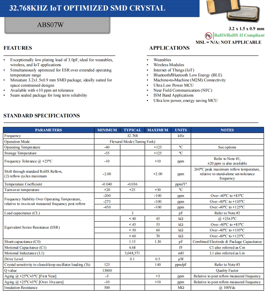 3215mm\ABS07W-32.768KHZ-J-2-T\無線模塊\32.768K\ABS07W 參數表