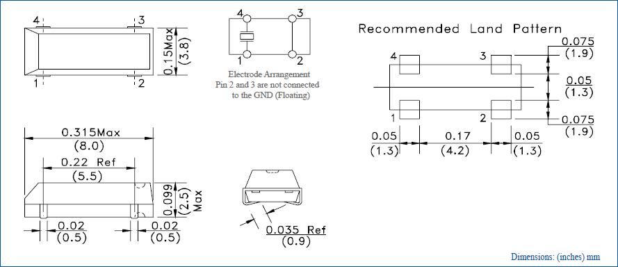 ABS25-32.768KHZ-4-T,8038mm,Abracon無源晶振,ABS25,測量設備晶振,尺寸圖