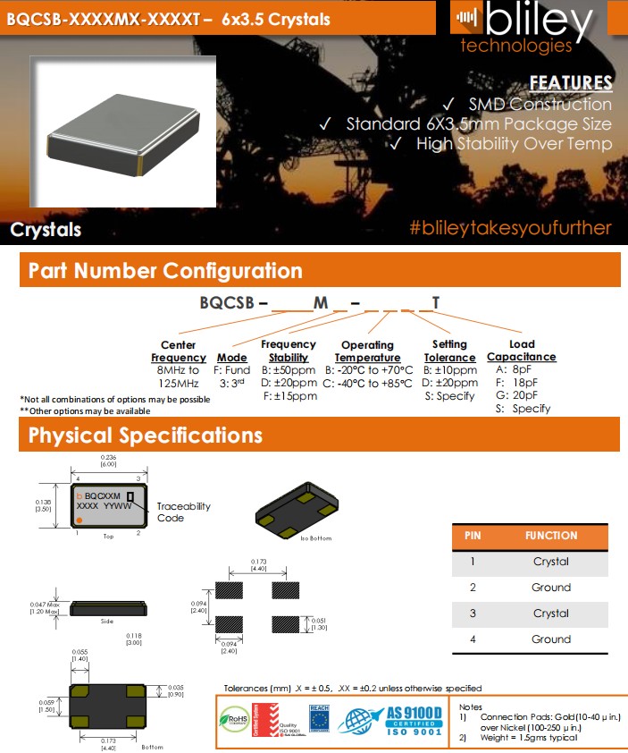 BQCSB-16MF-BCDGT,6035mm,16MHz,Bliley百利晶振,BQCSB,無源晶振,參數表