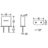 BC21EFD120-26.000000,26MHz,Bomar品牌,穿孔型晶體,UM-1,插件晶振,尺寸圖