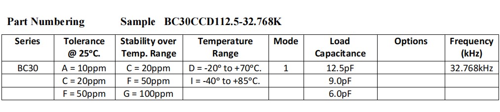 | Frequency Tolerance @ 25ºC. | ±10ppm, ±20ppm, ±50ppm | |||||||||