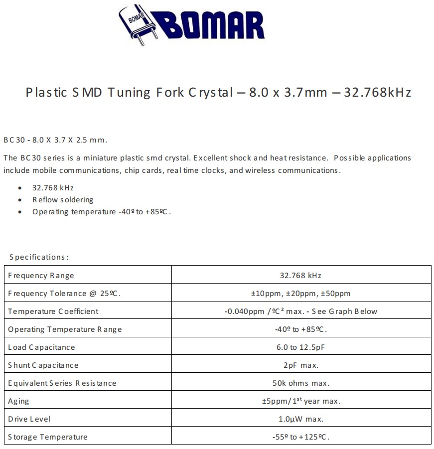 8038mm,BC30CCI112.5-32.768K,32.768KHz,Bomar儀器設(shè)備晶振,BC30,移動(dòng)通訊晶振,美國(guó)進(jìn)口晶振,Bomar博馬爾晶振,型號(hào):BC30,編碼為:BC30CCI112.5-32.768K,精度:±20ppm,頻率為:32.768KHz,工作溫度范圍:-40℃至+85℃,負(fù)載:12.5pF,頻率穩(wěn)定性:±20ppm,小體積晶振尺寸:8.0x3.7x2.5mm陶瓷封裝,四腳貼片晶振,無源晶振,石英晶振,石英晶體諧振器,無鉛環(huán)保晶振,SMD石英晶體。具有超小型,輕薄型,良好的抗沖擊性和耐熱性。應(yīng)用程序包括:實(shí)時(shí)時(shí)鐘晶振,移動(dòng)通信晶振、芯片卡晶振、無線通信晶振,鐘表電子晶振,電腦主板晶振等應(yīng)用。
