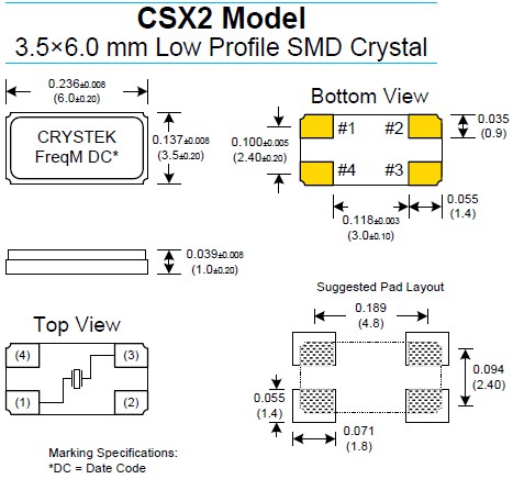 CRYSTEK晶振,CSX2晶振,高品質石英晶體.普通貼片石英晶振外觀使用金屬材料封裝的,具有高穩定性,高可靠性的石英晶體諧振器,晶振外觀本身使用金屬封裝,充分的密封性能,可確保其高可靠性,采用編帶包裝,外包裝采用朔膠盤,可在自動貼片機上對應自動貼裝等優勢.