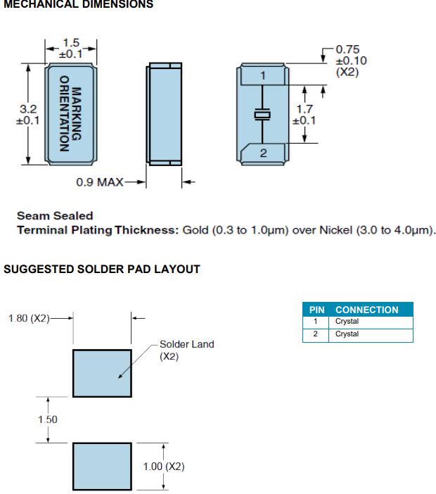 | Aging at 25°C | ±3ppm/year Maximum |