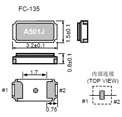 EPSON晶振FC-135,Q13FC1350000800水晶振動子 尺寸圖