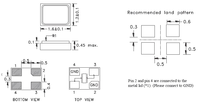 封裝 | 金屬面貼片 | 尺寸 | 1.6*1.2*0.4mm |