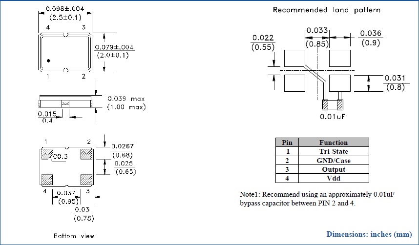建議將輸出負載安裝在盡可能靠近石英振蕩器的地方(在20mm范圍之間).