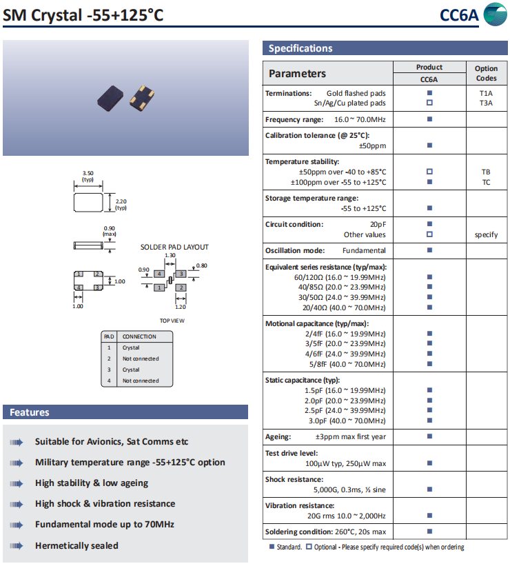 | Golledge晶振 | 單位 | CC6A晶振 | 石英晶振基本條件 |
