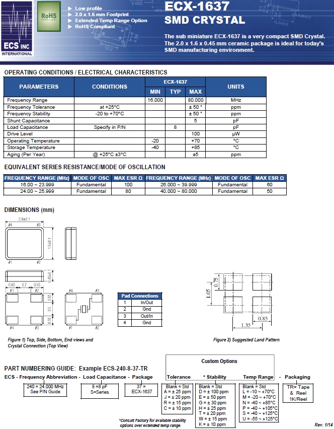 | ECS晶振 | 單位 | ECX-1637晶振 | 石英晶振基本條件 |