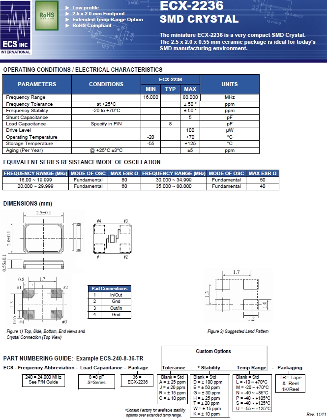 | ECS晶振 | 單位 | ECX-2236晶振 | 石英晶振基本條件 |