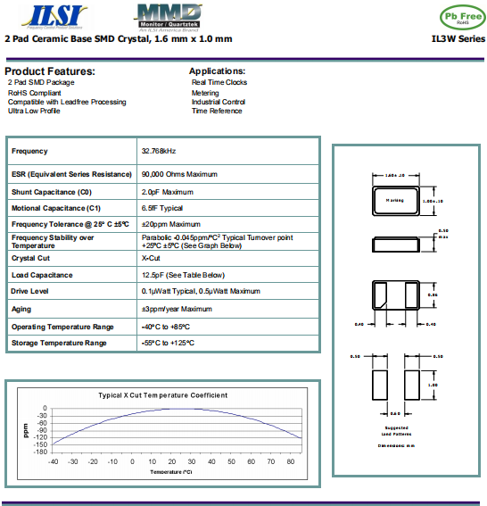 ILSI晶振,IL3W晶振,進口音叉晶體,貼片石英晶體,體積小,焊接可采用自動貼片系統,產品本身小型,表面貼片晶振,特別適用于有小型化要求的電子數碼產品市場領域,因產品小型,薄型優勢,耐環境特性,包括耐高溫,耐沖擊性等,在移動通信領域得到了廣泛的應用,晶振產品本身可發揮優良的電氣特性,滿足無鉛焊接的高溫回流溫度曲線要求.