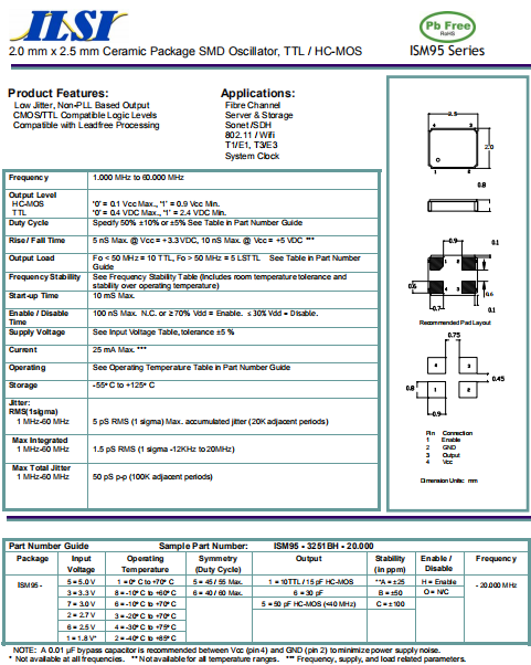 ILSI晶振,ISM95晶振,低電壓晶振.2520mm體積的晶振,可以說是目前小型數碼產品的福音,目前超小型的智能手機里面所應用的就是小型的石英晶振,該產品最適用于無線通訊系統,無線局域網,已實現低相位噪聲,低電壓,低消費電流和高穩定度,超小型,質量輕等產品特點,產品本身編帶包裝方式,可對應自動高速貼片機應用,以及高溫回流焊接(產品無鉛對應),為無鉛產品.
