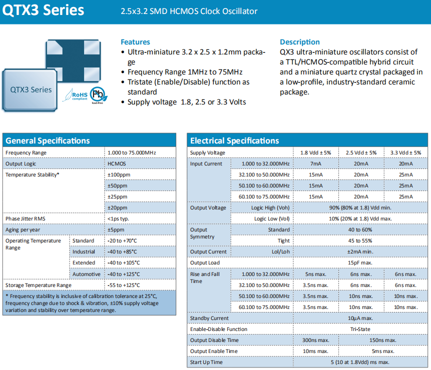 Quarztechnik晶振,QTX3晶振,耐高溫振蕩器.貼片式石英晶體振蕩器,低電壓啟動功率,并且有多種電壓供選擇,比如有1.8V,2.5V,3.3V,3.8V,5V等,產品被廣泛應用于,平板筆記本,GPS系統(tǒng),光纖通道,千兆以太網,串行ATA,串行連接SCSI,PCI-Express的SDH/SONET發(fā)射基站等領域.符合RoHS/無鉛.