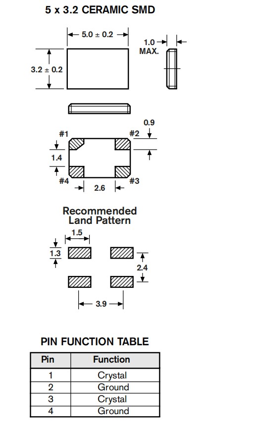 FMXMC3S120FHB-24.576000M-CM,5032mm,FMI品牌,24.576MHz,FMXMC3S,高可靠性晶振,尺寸圖