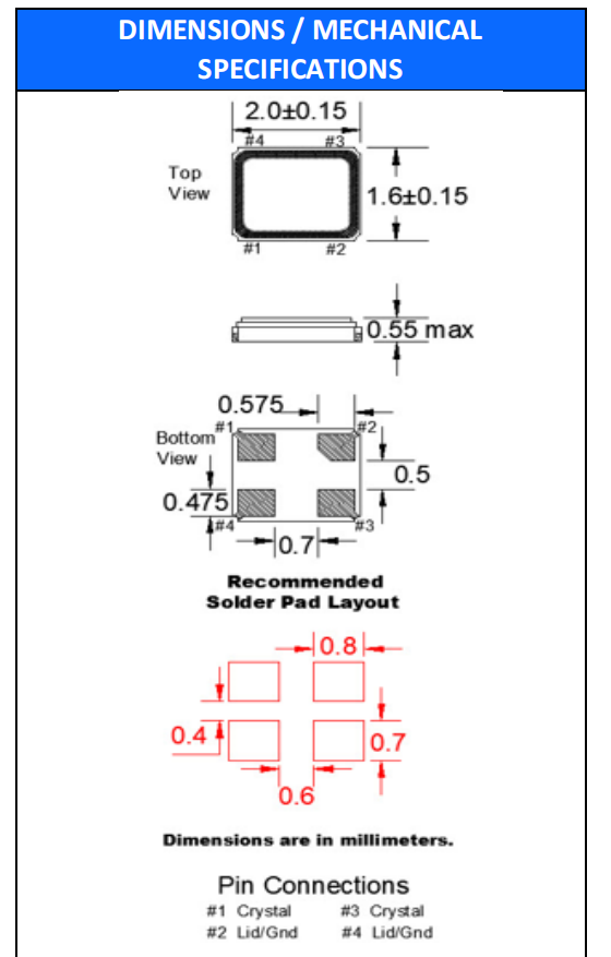 FC1BSCCEM16.0-T3,16MHz,FC1BS,2016mm,FOX石英晶體,小體積晶振,智能手機晶振,尺寸圖