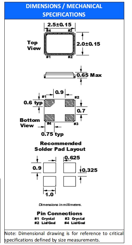 | Aging per year (@ 25°C) | ±5 PPM | ||||||||||||||