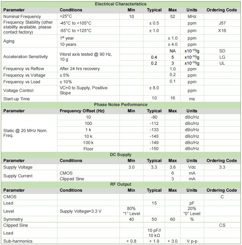T56-J57-CS-LG-26MHz-E,5032mm,Greenray溫補晶振,T56,航空電子晶振,參數(shù)表