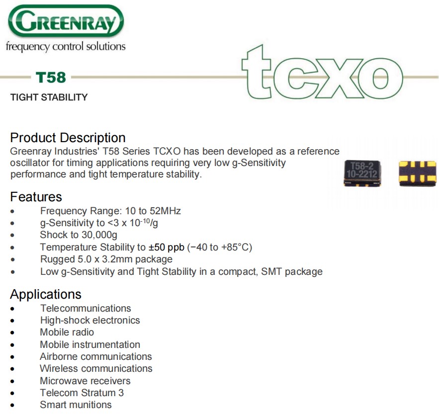5032mm,T58-J17-CS-LG-45MHz-HG-E,45M,Greenray晶振,T58,低抖動晶振