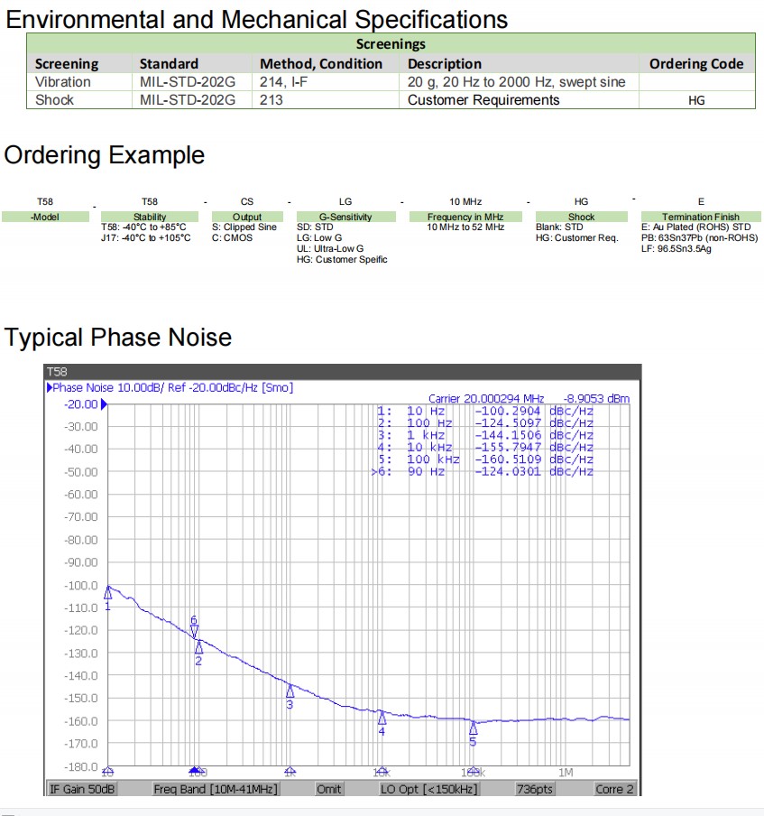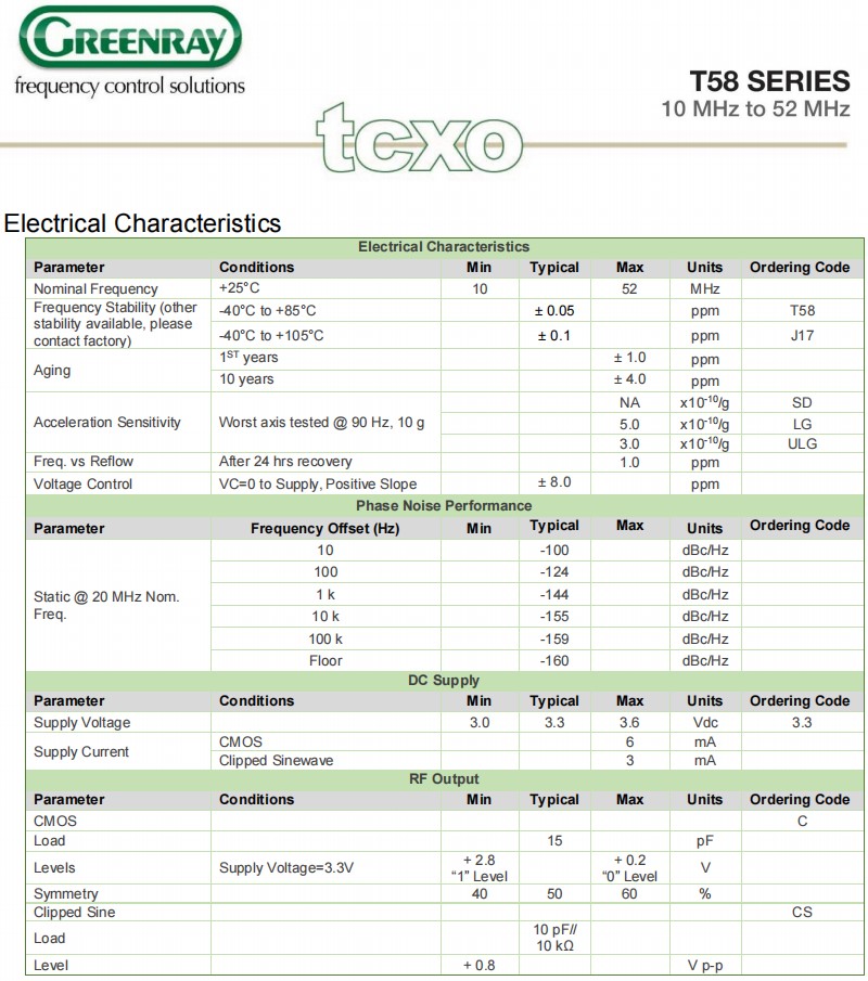 5032mm,T58-J17-CS-LG-45MHz-HG-E,45M,Greenray晶振,T58,低抖動晶振,參數(shù)表
