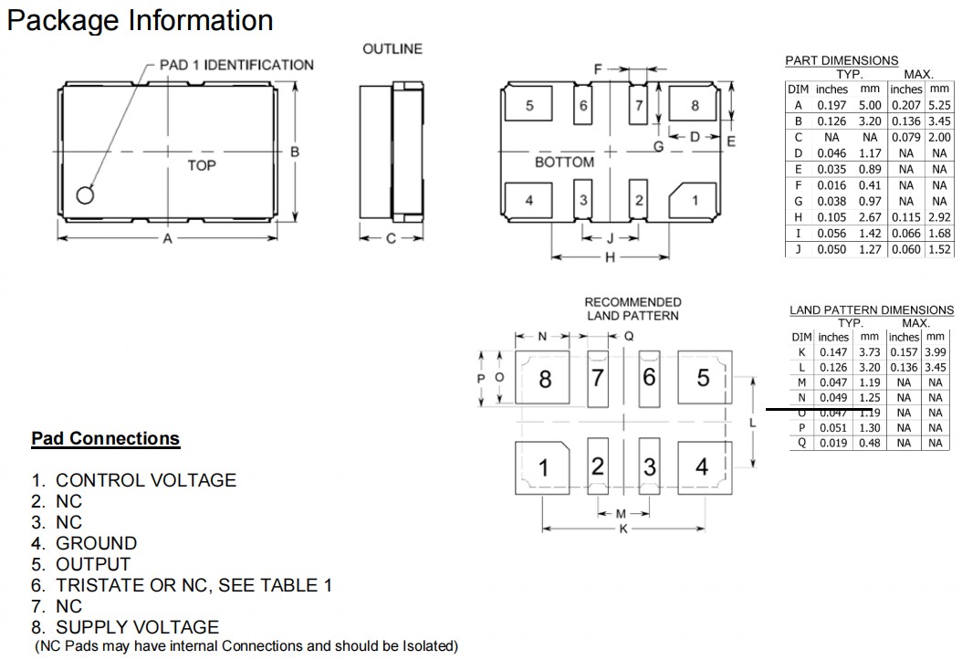 | Voltage Control | VC=0 to Supply, Positive Slope | ± 8.0 | ppm | |||