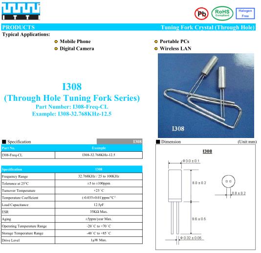 建議將石英晶振輸出負(fù)載安裝在盡可能靠近振蕩器的地方(在20 mm范圍之間).ITTI晶振,I308圓柱插件晶振,I308-32.768KHz-12.5晶振.
