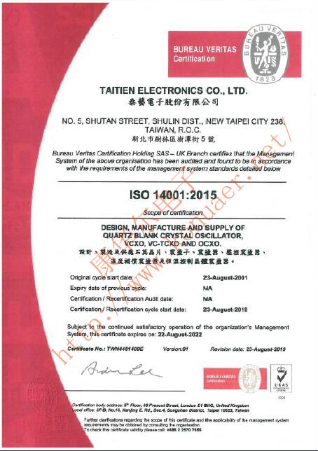 - [2020-07-10]臺(tái)系TST晶振公司ISO:14001:2015...