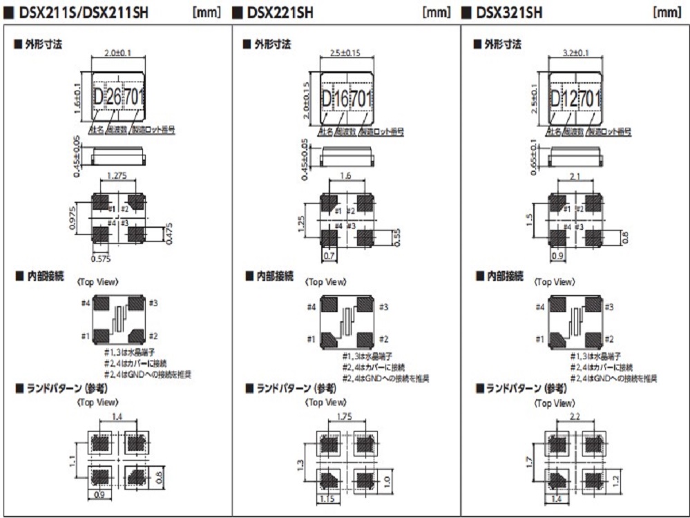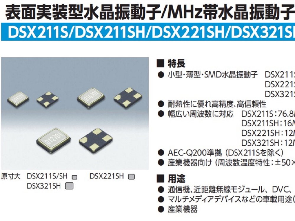 1ZNY24000BC0E 產(chǎn)業(yè)機器 KDS DSX321SH 24MHZ 3225mm 參數(shù)表| 項目 | 型名 | DSX211SH | DSX211S | DSX321SH | ||||