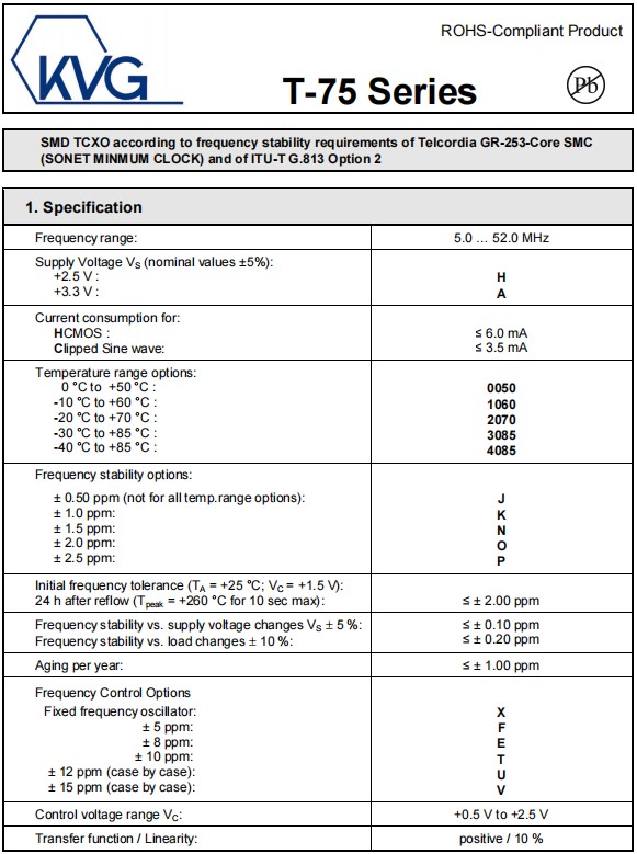 T-75,T-75A2070KXH-24.000MHz,7050mm,KVG低電壓晶振,HCMOS輸出晶振,溫補(bǔ)晶體振蕩器,參數(shù)表