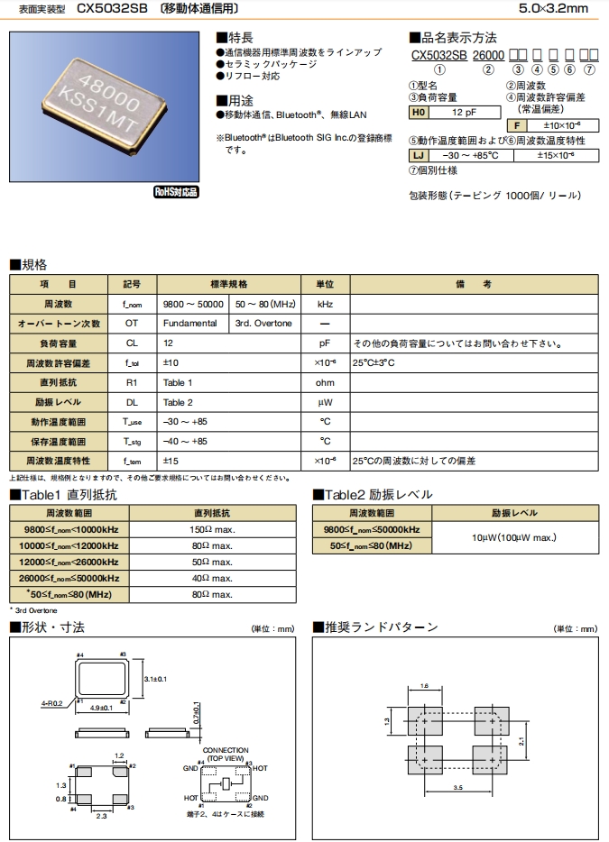 | CX5032GB19200P0HEQZ1 | AVX Corp/Kyocera Corp | CX5032GB, Kyocera | MHz Crystal | 19.2MHz | -10°C ~ 70°C |