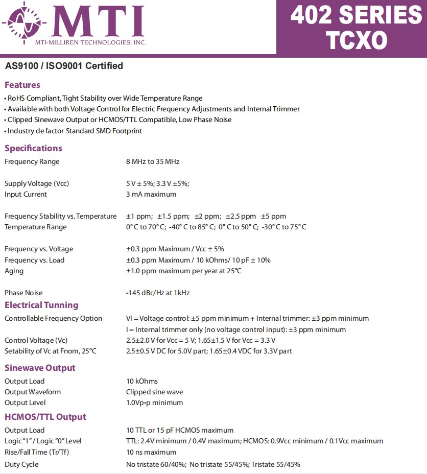 MTI-milliren溫補晶體振蕩器,402系列有源晶振,低抖動晶振,SMD晶振,無線網(wǎng)絡(luò)晶振,參數(shù)表