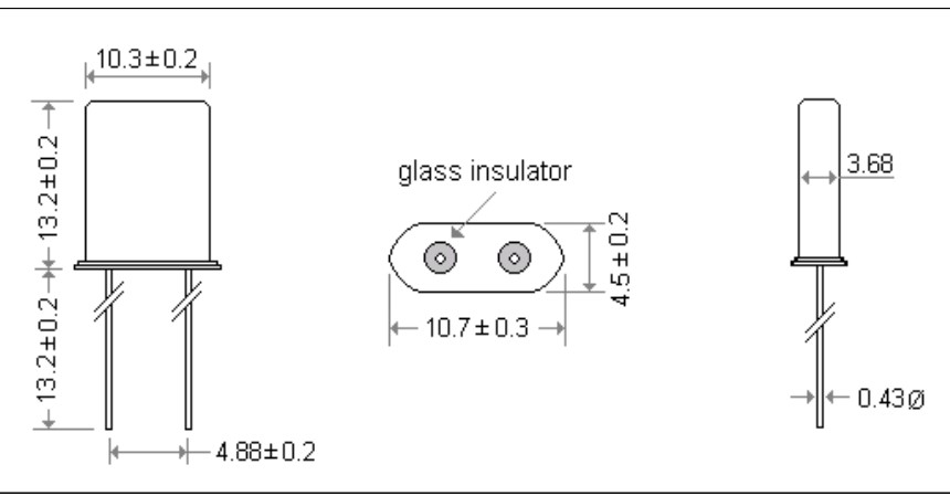 MERCURY瑪居禮晶振,H49-40.000A3-12-30/30X,高清電視6G晶振,兩腳插件晶振,無鉛環保晶振,尺寸圖