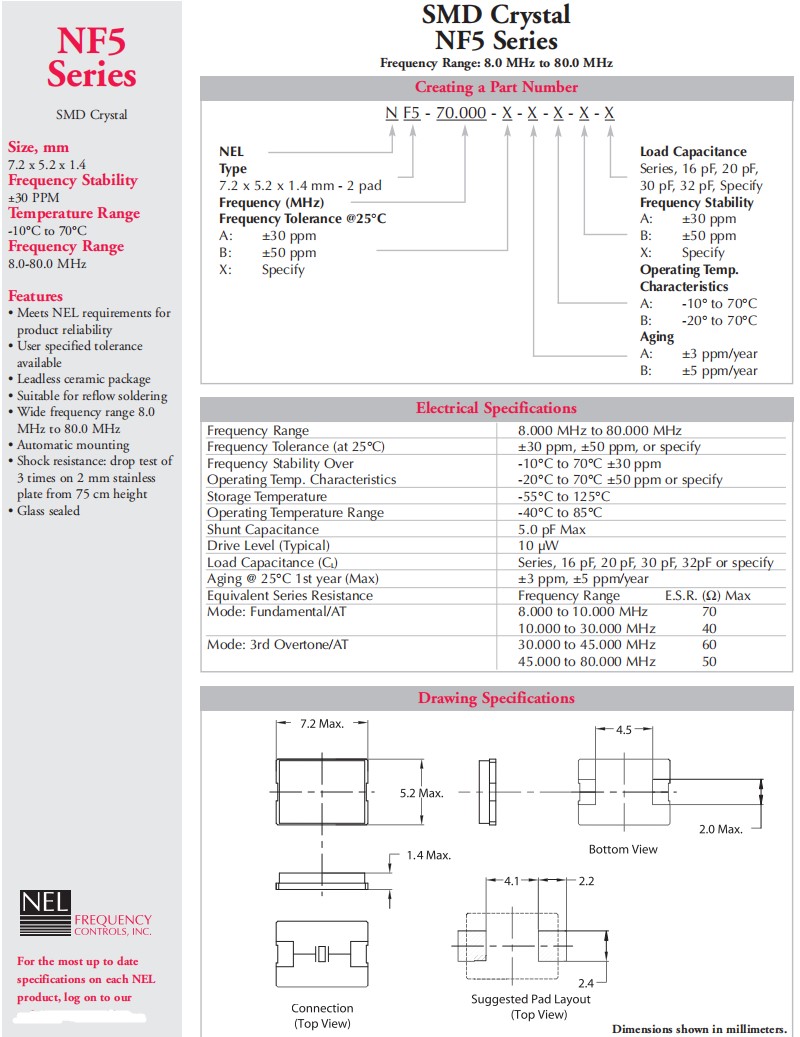 NF5-19.200-A-A-B-A-20pF,7050mm,19.2MHz,NEL品牌,NF5,兩腳貼片晶振,參數(shù)表