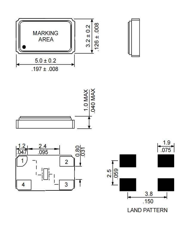 小包裝的5.0 x 3.2 x 1.0 mm