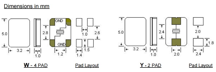 5032mm,AAW24M000000GLE18H,24MHz,STD輕薄型晶振,晶體諧振器,汽車影音晶振,尺寸圖