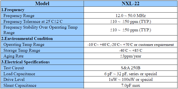 NXL-22石英晶體諧振器,2520mm貼片晶振,臺(tái)灣NSK晶振,尺寸大小2.5*2.0*0.6mm,頻率操作范圍12.0 to 50.0MHZ,工作溫度-20~+70℃耐高溫環(huán)境,縫焊優(yōu)良的可焊性,自動(dòng)和完美的包裝,由于浮雕錄制優(yōu)秀的抗振性和耐沖擊性,通過無(wú)鉛認(rèn)證.