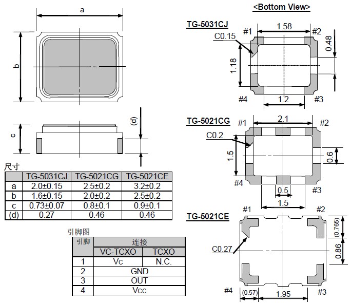 愛普生石英晶振,TG-5021CG溫補振蕩器,有源晶振,頻率范圍13MHz ~ 52MHz,電源電壓2.8V Typ.頻率溫度特征±2.0×10-6 Max.外部尺寸2.5×2.0×0.8mm,被廣泛應用于手機 (CDMA, WCDMA, GSM),具有低噪音特性.