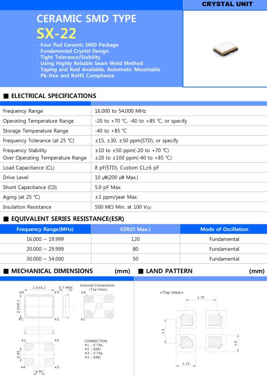 太陽電子晶振,SX-22石英貼片晶體,SQ8130J6-16.00000-T&R晶振,小型貼片石英晶振,外觀尺寸具有薄型表面貼片型石英晶體振蕩器,特別適用于有小型化要求的市場領域,比如智能手機,無線藍牙,平板電腦等電子數碼產品.晶振本身超小型,薄型,重量輕,晶體具有優良的耐環境特性,如耐熱性,耐沖擊性,在辦公自動化,家電相關電器領域及Bluetooth,WirelessLAN等短距離無線通信領域可發揮優良的電氣特性,滿足無鉛焊接的回流溫度曲線要求.