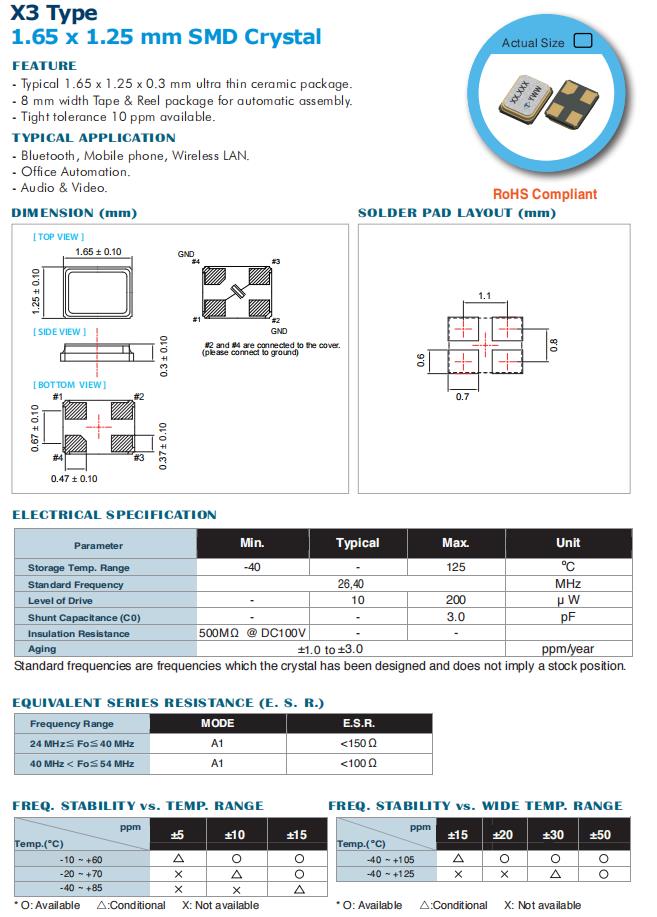 | X3AEELNANF-26.000000 | Taitien晶振 | X3 | MHz Crystal | 26MHz | -40°C ~ 85°C |