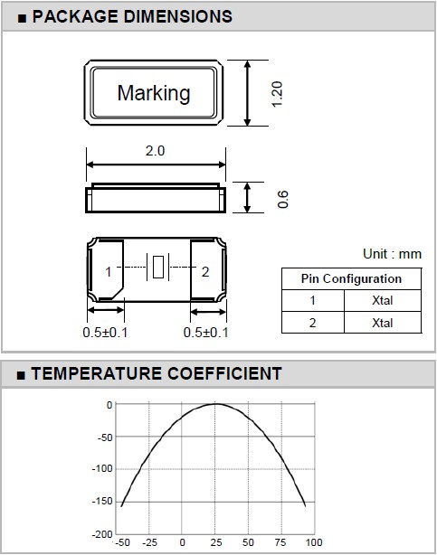| 激勵功率 | DL | 1.0μW Max. | 推薦:100μW ~ 300μW |