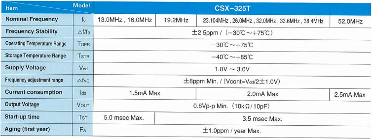CITIZEN晶振,CSX-325T振蕩器,汽車電子石英晶振,工作頻率范圍13.0~52.0MHZ,尺寸大小3.2*2.5*1.0mm,廣泛的輸出頻率鎖相環技術,快速樣品交付質量和短的交貨時間生產,允許輸出低電流消耗,小型表面貼片型晶體諧振器,最適合用于即使在汽車電子領域中也是特別要求高可靠性的引擎控制用CPU的時鐘部分.