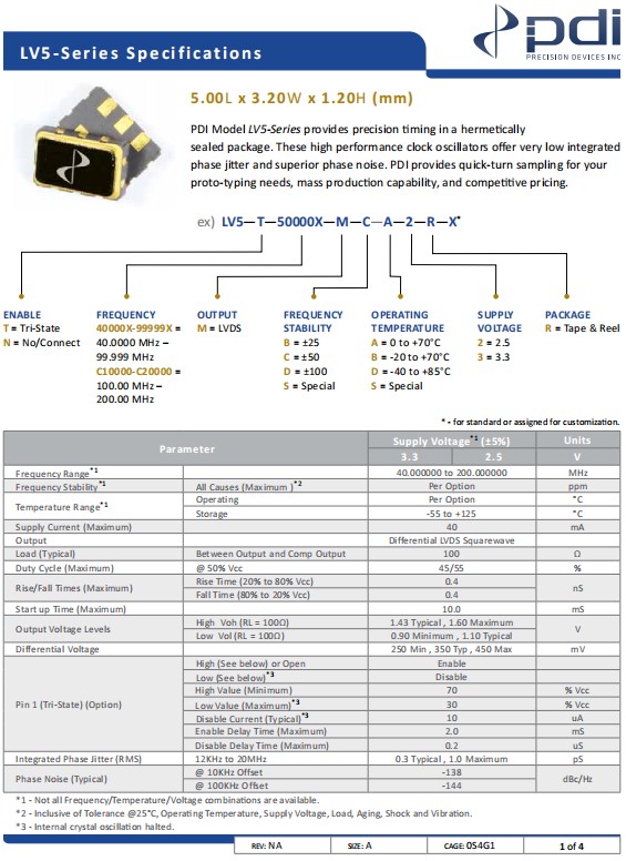 Wi2wi低相位噪聲晶振,LV5-T-75000X-M-C-B-2-R-X,有源晶振,參數表