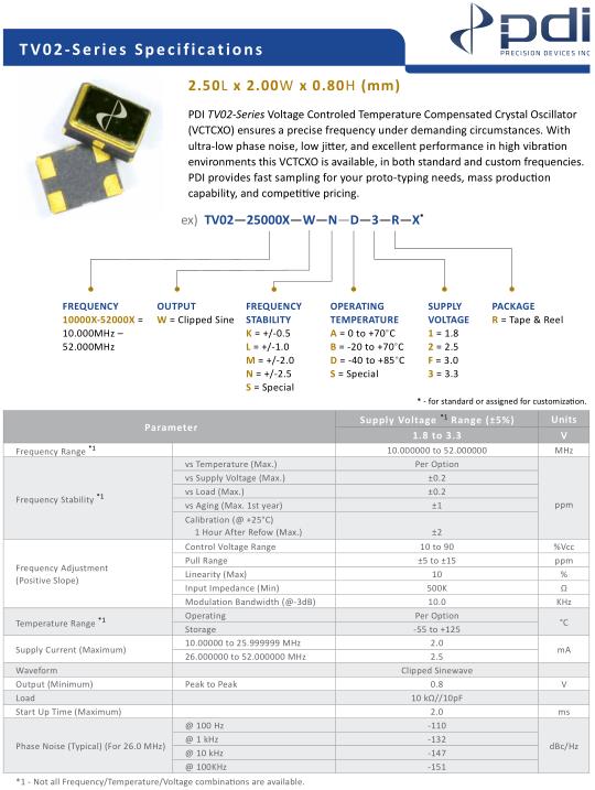 | Parameter-Wi2Wi晶振-TV02晶振 | Supply Voltage *1 Range (±5%) | Units | |