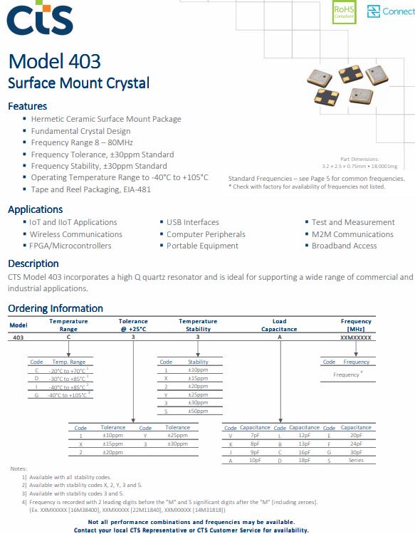 | 403C11A32M00000 | CTS貼片晶振 | 403 | 32MHz |