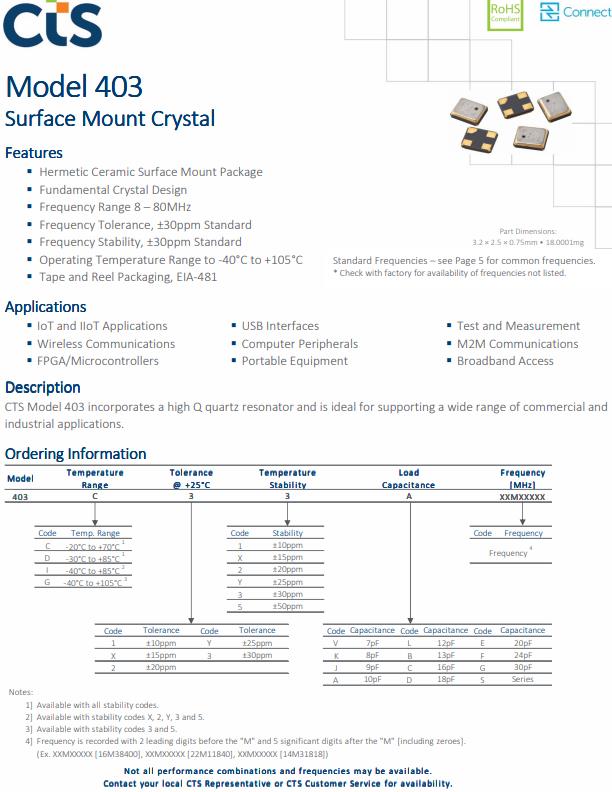 | 403I35D30M00000 | 西迪斯晶振 | 403 | MHz Crystal | 30MHz |