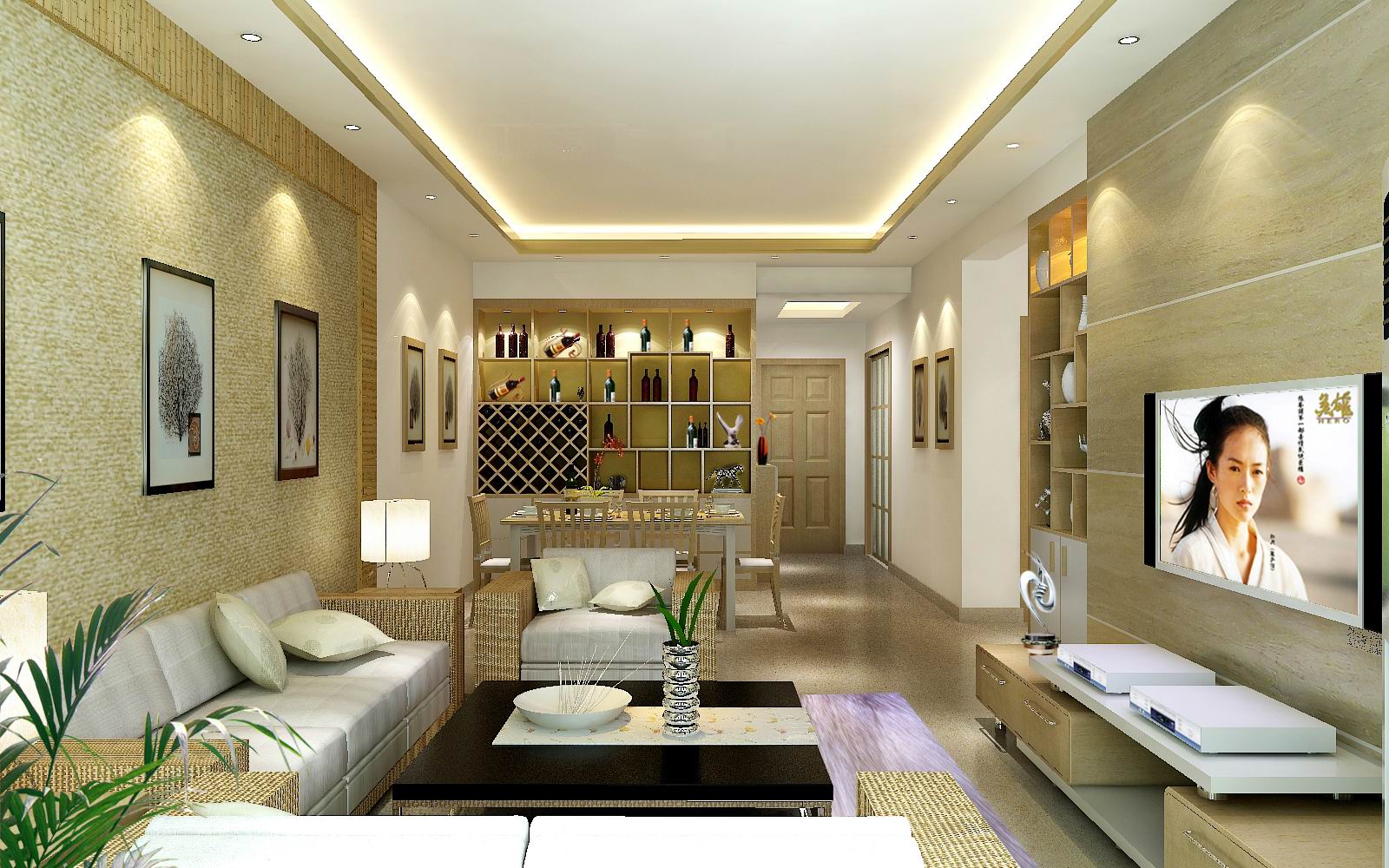 客廳是家人和親友相聚的地方,最需要營(yíng)造出活潑、融洽的氣氛。圓形屬陽(yáng)、是動(dòng)態(tài)的象徵,所以圓形的燈飾、天花造型、以及裝飾品具有引導(dǎo)溫馨、熱鬧的氣氛。