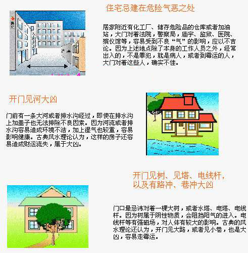 忌天斬煞。所謂“天斬煞”是指兩幢高樓大廈之間的一條狹窄空隙;因?yàn)楹孟裼玫稄陌肟諗爻蓛砂耄蚀朔Q為天斬煞。倘若房屋面對(duì)“天斬煞”,很可能會(huì)有血光之災(zāi):空隙愈狹長(zhǎng)便愈兇,距離愈近便愈險(xiǎn)!故此宜選擇面對(duì)天斬煞的房屋居住,但若是在其背后有另一建筑物填補(bǔ)空隙則不妨。忌箭煞。“箭煞”是指住宅門外見尖銳的墻角沖射,尖引破財(cái)?shù)脑颍嗯c不列問(wèn)題有關(guān):因?yàn)樯眢w健康總問(wèn)題而破財(cái);被他人欺騙而破財(cái)。化煞的方法要從。“天地人”著手,在門檻藏五帝錢,這是地化煞法;在門楣掛一個(gè)凸鏡,這是天化煞法;在廳拉環(huán)位置掛一用口含拉環(huán)的獸頭牌,這是人化煞法。
