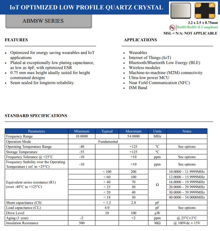 穿戴應用市場最愛的石英晶體編碼ABM8W-12.0000MHZ-6-B2U-T3