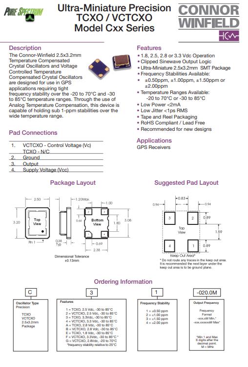 Connor-Winfield寬溫的TCXO振蕩器C34-032.0M專用于GPS接收器