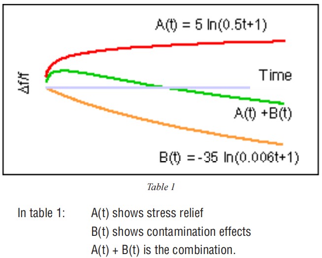 當施加應力時,石英晶體會改變頻率。這種壓力可以來自于任何一種或所有的幾種來源。封裝和安裝,環氧樹脂連接,金屬薄膜,和石英本身可以是應力的來源。如果應力在該部件的使用壽命中是恒定的,則頻率將保持不變。然而,在現實世界中,壓力會隨著時間的推移而放松,因此,壓力相關的就會老化。