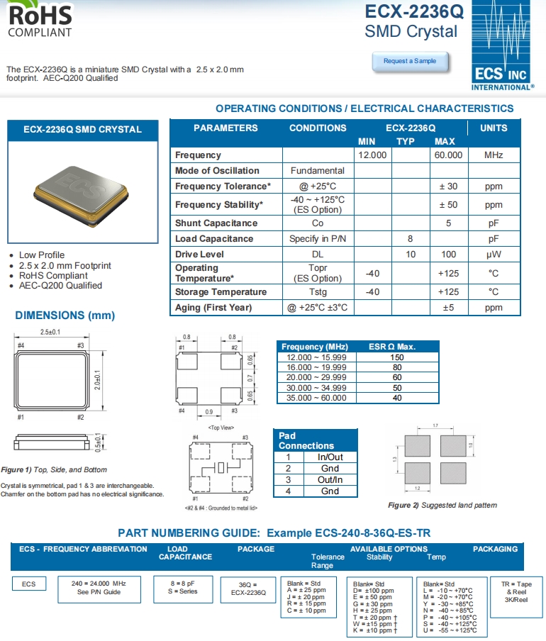 | ECS-245.7-10-36Q-ES-TR | ECS晶振 | ECX-2236Q | 24.576MHz | -40°C ~ 125°C |